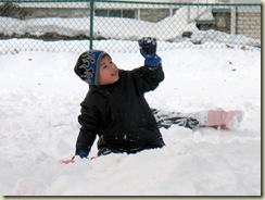 In the last 4 days we've had about 20" of snow followed by sleet, freezing rain then rain. Today we played outside for at least 2 hours. I'd like to say fun was had by all, but for me it's just participating to make sure the kids are safe. I'd really rather be inside doing something more adult. I always have this fear someone will drive by and snatch one of my kids, so I rarely let them out without an adult somewhere very near. We live in a nice neighborhood, but bad things can happen anywhere, and I try to be diligently watching them all the time. It's hard for them to understand why their cousins, who visit their grandparents that live downstairs from us, have more freedom than they do.